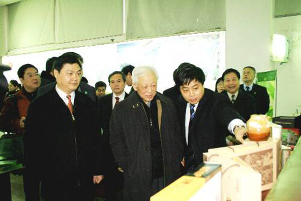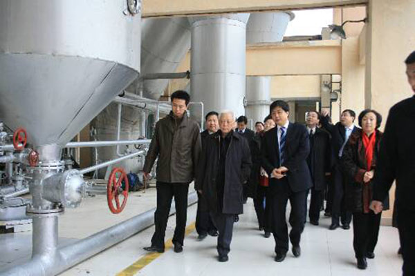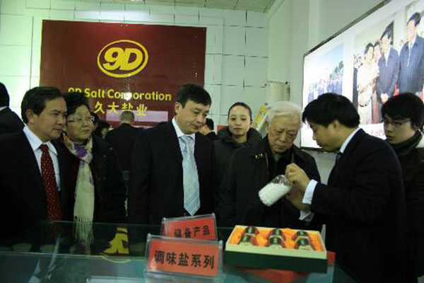 2009年1月17日在舒坪制盐区,周铁农先后来到真空制盐车间、主控制室以及产品陈列室,仔细询问了企业产品种类、市场份额等方面的情况。